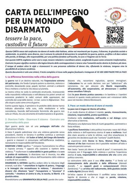 Ecco a voi la locandina che sintetizza quanto riportato nella "Carta dell'impegno per un mondo disarmato" e che inserisce il QRcode per leggere il testo completo.