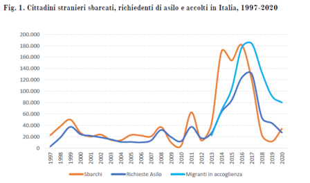 Dagli studi di Monia Giovannetti se per i migranti siriani o del Corno d’Africa (dall’Eritrea, dalla Somalia, al Sudan) il nostro Paese è il primo approdo verso una migrazione finale in altri Paesi europei, mentre, dall’altro lato, risulta diverso l’orientamento dei cittadini degli Stati dell’Africa centro-occidentale (Nigeria, Gambia, Mali, Senegal, ecc.), i quali, quasi nella totalità dei casi fanno richiesta d’asilo in Italia una volta arrivati. Questo sembra valere anche per molte persone provenienti da Ghana, Costa d’Avorio, Guinea, rispetto alle quali il rapporto tra “sbarcati” e richiedenti asilo è molto vicino alla parità.