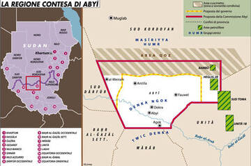 Resta aperto il nodo di Abyei, una regione petrolifera, ma anche una regione idrogeologicamente fertile (fiume Kiir) al confine tra il Sudan del Nord e il Sudan del Sud che il governo di Karthoum rivendica come leggittimo territorio del Sudan settentrionale facendo presagire la riaccensione di un conflitto armato.