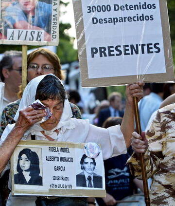 Con il termine Desaparecidos ( che significa scomparsi, in spagnolo) ci si riferisce a persone che durante la dittatura militare argentina (1976- 1983) furono arrestate per motivi politici e e delle quali poi, le loro famiglie, non ebbero più notizia. Si calcola che, durante quella che fu definita guerra sucia (guerra sporca) sparirono 30.000 persone. Dopo oltre 25 anni le madri e le nonne di giovani e bambini desaparecidos si riuniscono nella Plaza de Majo per chiedere giustizia