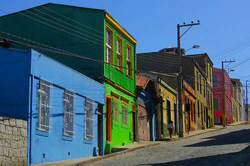 La città di Valparaiso si distingue per le sue case colorate, di origine coloniale, arroccate su 44 alture, collegati da lunghe scalinate e da ascensores, in realtà ripidissime funicolari, divenute simbolo della città