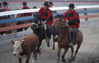 Il rodeo, sport molto praticato anche negli Stati Uniti e in Messico, è stato dichiarato lo sport nazionale del Cile nel 1962. Il rodeo è uno sport equestre condotto da una coppia, collera, di mandriani, huasos (versione cilena dei gauchos argentini e dei cow-boys statunitensi) impegnati nella doma di cavalli e tori all'interno della medialuna, il recinto di gara, così chiamato per la forma ovale. La medialuna presenta al suo interno un recinto più piccolo, con due porte ai lati, all'interno del quale la collera deve aspettare il vitello, poi fargli fare due giri di corsa, farlo passare nel recinto grande e fargli fare mezzo giro. Gli huasos poi devono fermare il vitello nelle protezioni imbottite collocate nelle parti più strette dell'ovale e farlo girare, portarlo fino all'altra parte imbottita e farlo girare di nuovo e ripetere la cosa due volte. Dopo questo il vitello può tornare nel recinto con gli altri. Ogni operazione di cambio direzione fa guadagnare alla collera da uno a tre punti. Se invece il vitello viene girato prima o dopo la zona imbottita (e quindi contro la recinzione in legno) la collera perde un punto. Se il vitello rientra nel recinto piccolo si perdono due punti