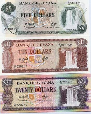 Le banconote attualmente in circolazione in Guyana sono del valore di 20, 100, 500, 1000$ (raramente vengono usate quelle da 1, 5 e 10$)