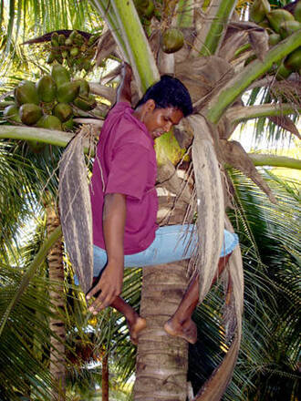 Pare che il nome "Kerala", lo stato nel sud ovest dell'India, significhi "terra delle noci di cocco" ed infatti qui si producono il 60% di tutte le noci di cocco indiane. Bastano 3 alberi di cocco per mantenere una famiglia perchè da essi si ricavano una infinità di prodotti utilizzati sia per il fabbisogno familiare sia per il commercio.