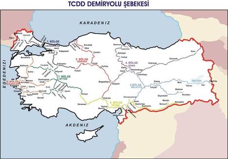 Il sistema ferroviario turco è gestito dalla TCDD (Turkye Cumhuriyeti Delvet Demiryollari), le Ferrovie dello Stato Turche. La linea ferroviaria Istanbul-Ankara è il tragitto più frequentato. Su questa linea viaggiano quotidianamente numerosi treni.
