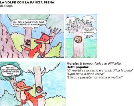 Leggi la favola di Esopo "La volpe con la pancia piena"; morale della favola: la pazienza e il tempo sono degli ottimi alleati per affrontare qualsiasi difficoltà (Progetto realizzato durante la fase sperimentale di Atlante on-line a cura delle alunne Maddalena e Gabriela; docenti: Zara M. Loretta ed Artese Rosa; classe IV A della Scuola Primaria “A Colombo”, Istituto Comprensivo “G. Sarto” di Castelfranco Veneto, TV; A.S. 2009-2010)