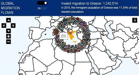 In Grecia si arriva. Nel 2015, la popolazione immigrata regolare rappresentava oltre l'11% del totale della popolazione residente (di circa 11 milioni di persone). Mentre, a luglio 2016, sono stati poco meno di 160.000 gli sbarchi di migranti irregolari.